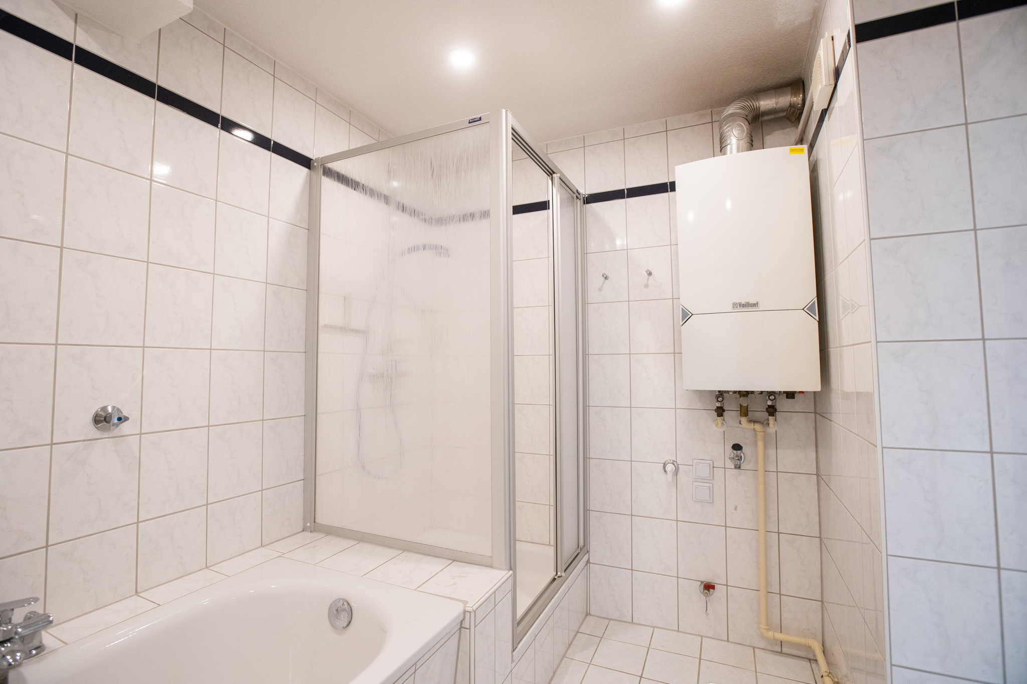 Die Wohnung ist renoviert mit neuen Heiz- und Sanitärelementen. Ebenso verfügt die Wohnung über moderne und energiesparende LED-Panels. Die Elektrik entspricht nach einer Überarbeitung den aktuellen Normen (FI-Schutzschalter, IP44-Steckdosen im Badezimmer und neben Wasserausgängen, neue feuchtraumgeeignete LED-Spots im Badezimmer), eine Einbauküche ist vorhanden. Derzeit befindet sich ein Holzparkettboden in der Wohnung. Diesen tauschen wir bei nächster Gelegenheit gegen Klickvinyl aus. Das innenliegende Bad weißt einen guten Zustand auf und beinhaltet Dusch- und Badewanne, ein Wand-WC sowie einen Rippenheizkörper.